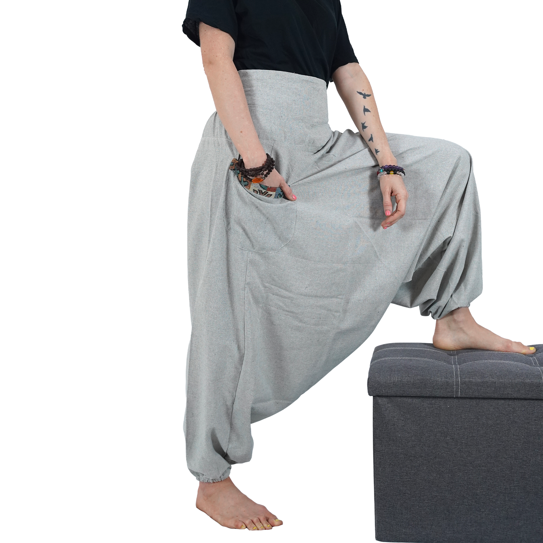 Step into freedom of movement and effortless elegance with these Ash Grey Aladin Harem Pants. Designed with a relaxed silhouette, they let you flow through yoga poses, workouts, or simply a laid-back day at home without restriction.
