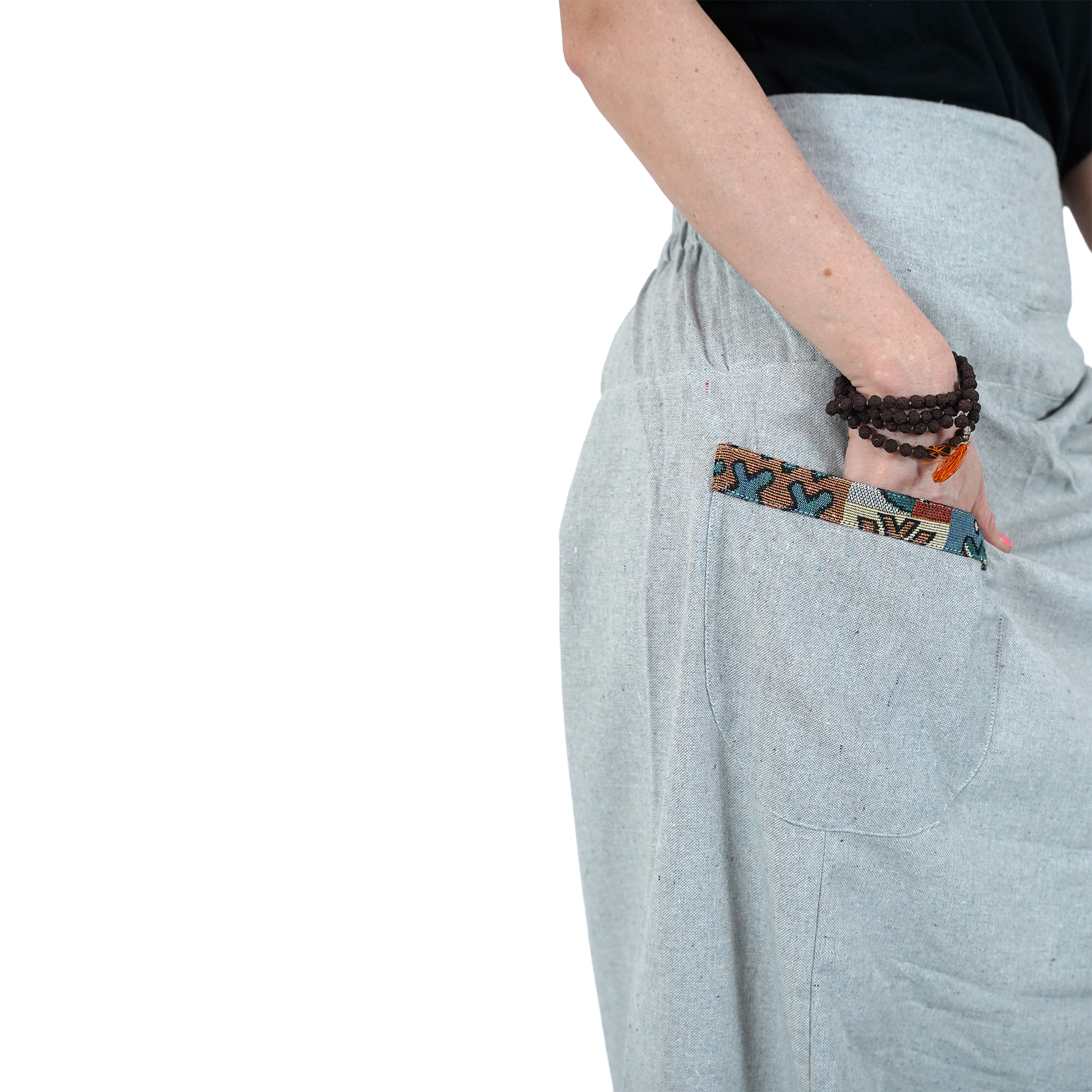 Crafted from premium cotton, the lightweight fabric keeps you cool and comfortable from morning practice to evening strolls. The elastic back adapts to your body, while the patterned pocket adds a subtle boho touch that makes them stand out.