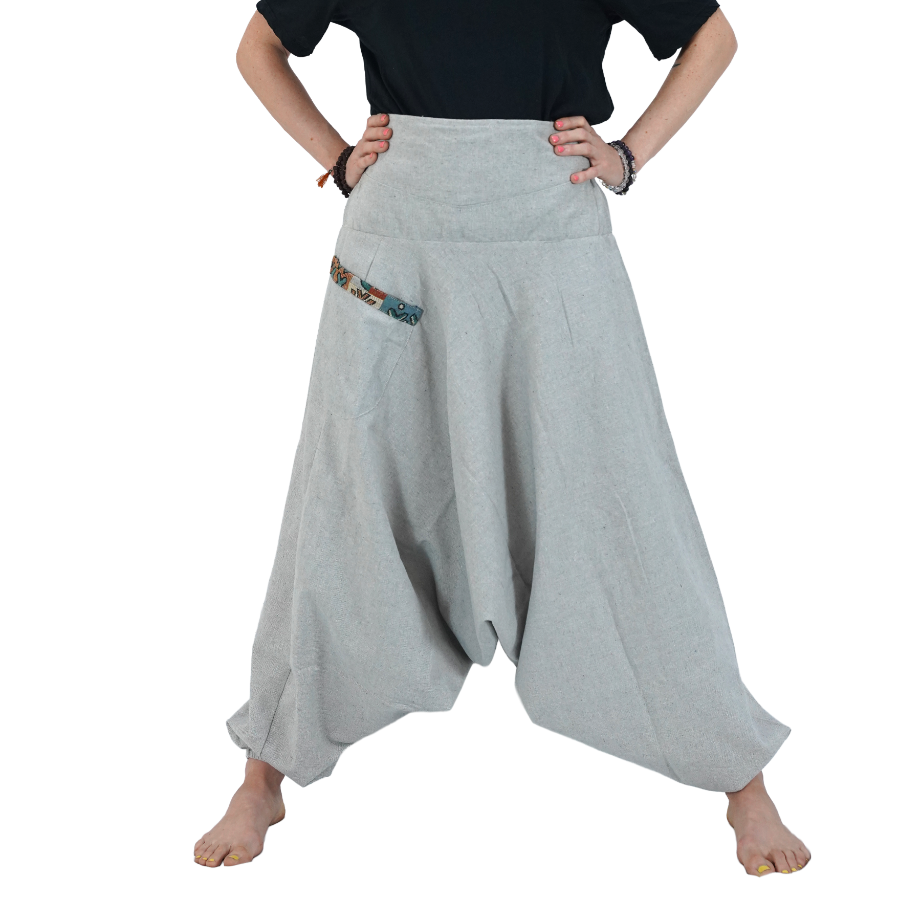 Ash Grey Aladin Harem Pants with Elastic Back Side