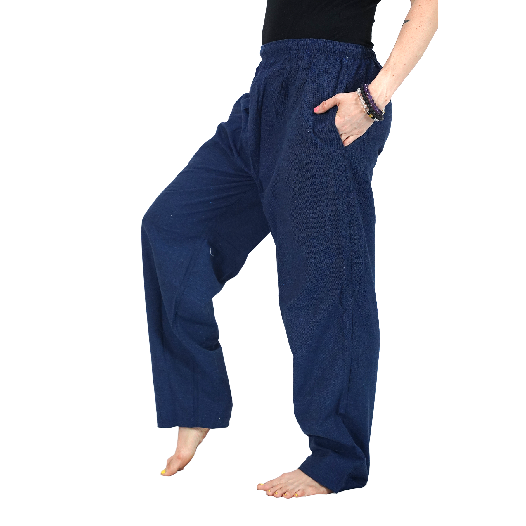Perfect for yoga, meditation, travel, or simply unwinding at home, these blue lounge pants combine minimalistic elegance with eco-conscious fashion.