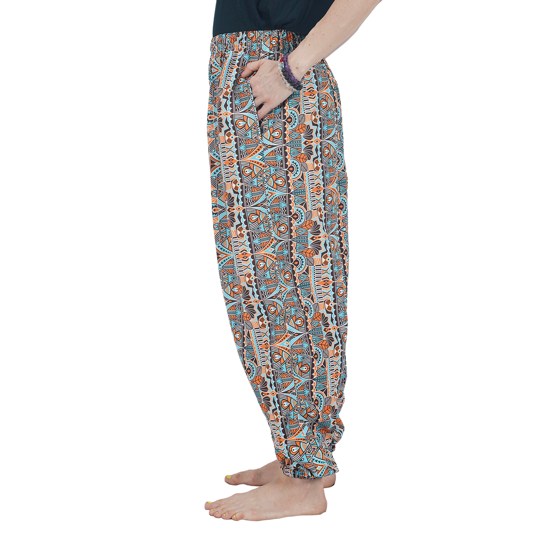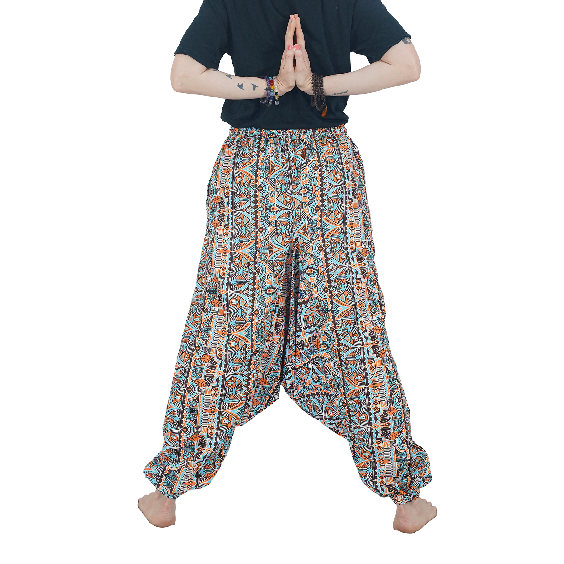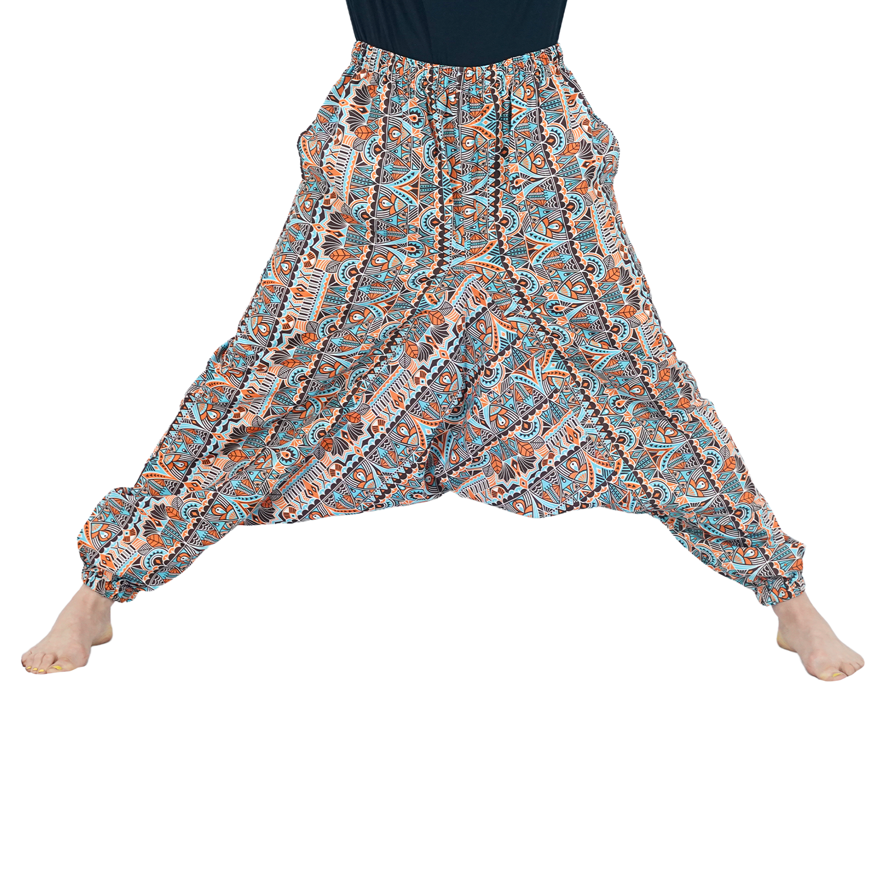 Blue Orange Mandala Digital Printed Drop Crotch Pants Export Quality