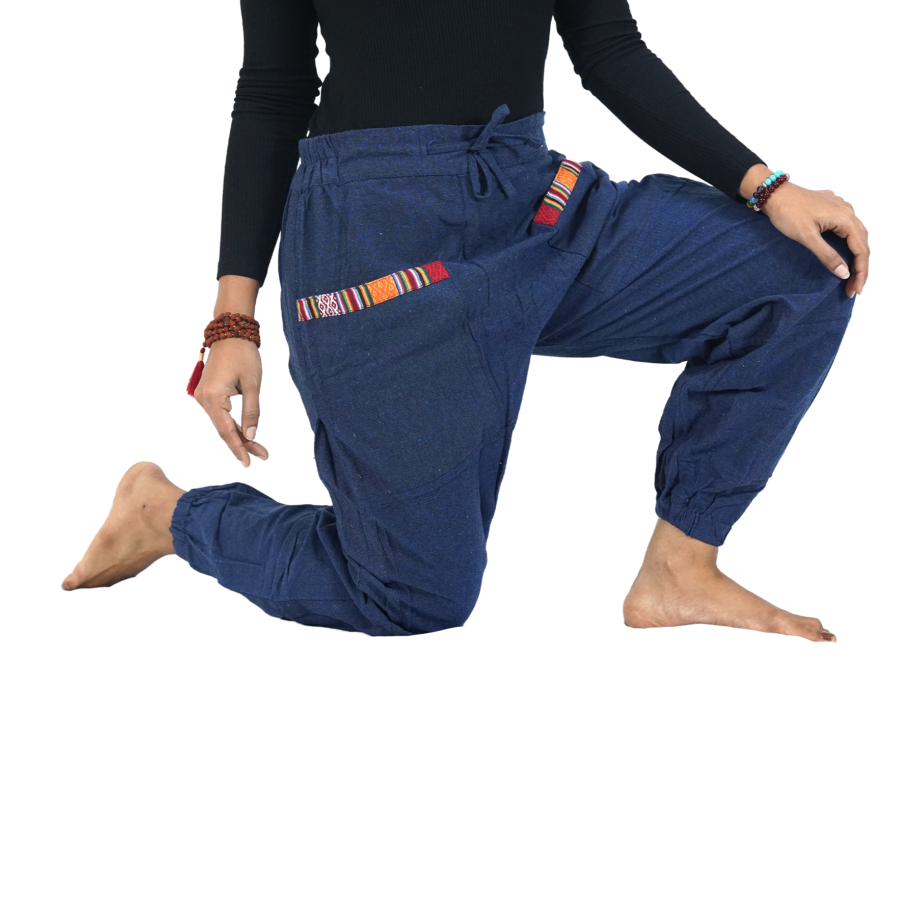 Perfect for yoga, meditation, travel, or casual lounging, these pants blend functionality with free-spirited style. The soft cotton fabric keeps you cool and relaxed, while the patchwork pocket accents add just the right amount of personality to your look.