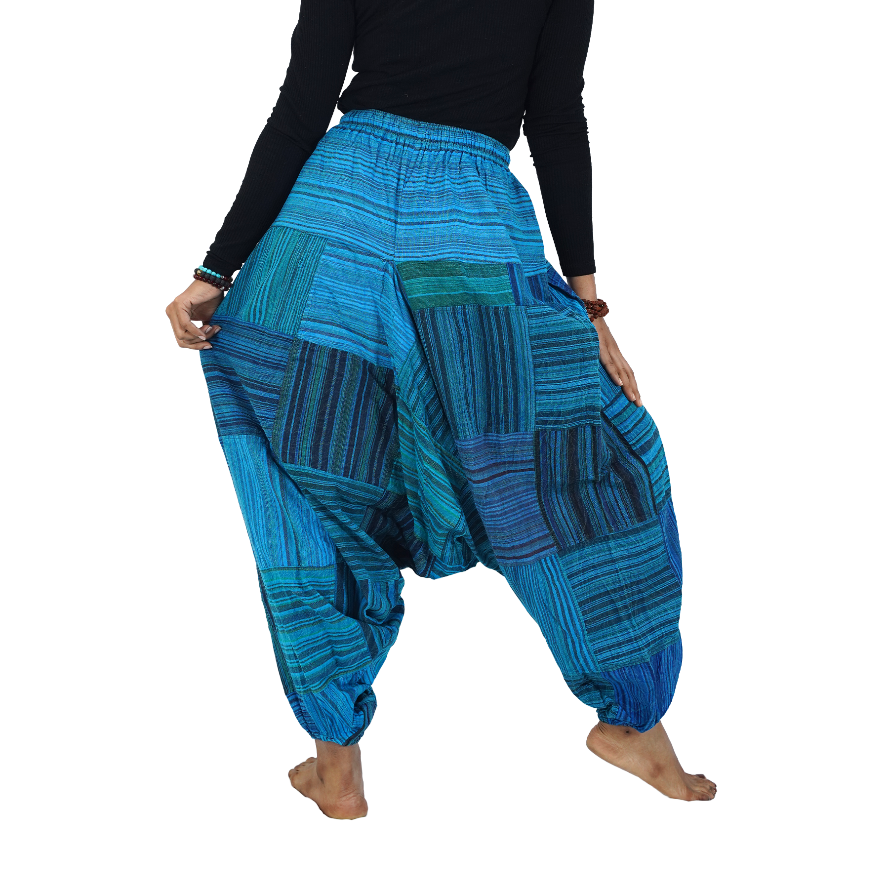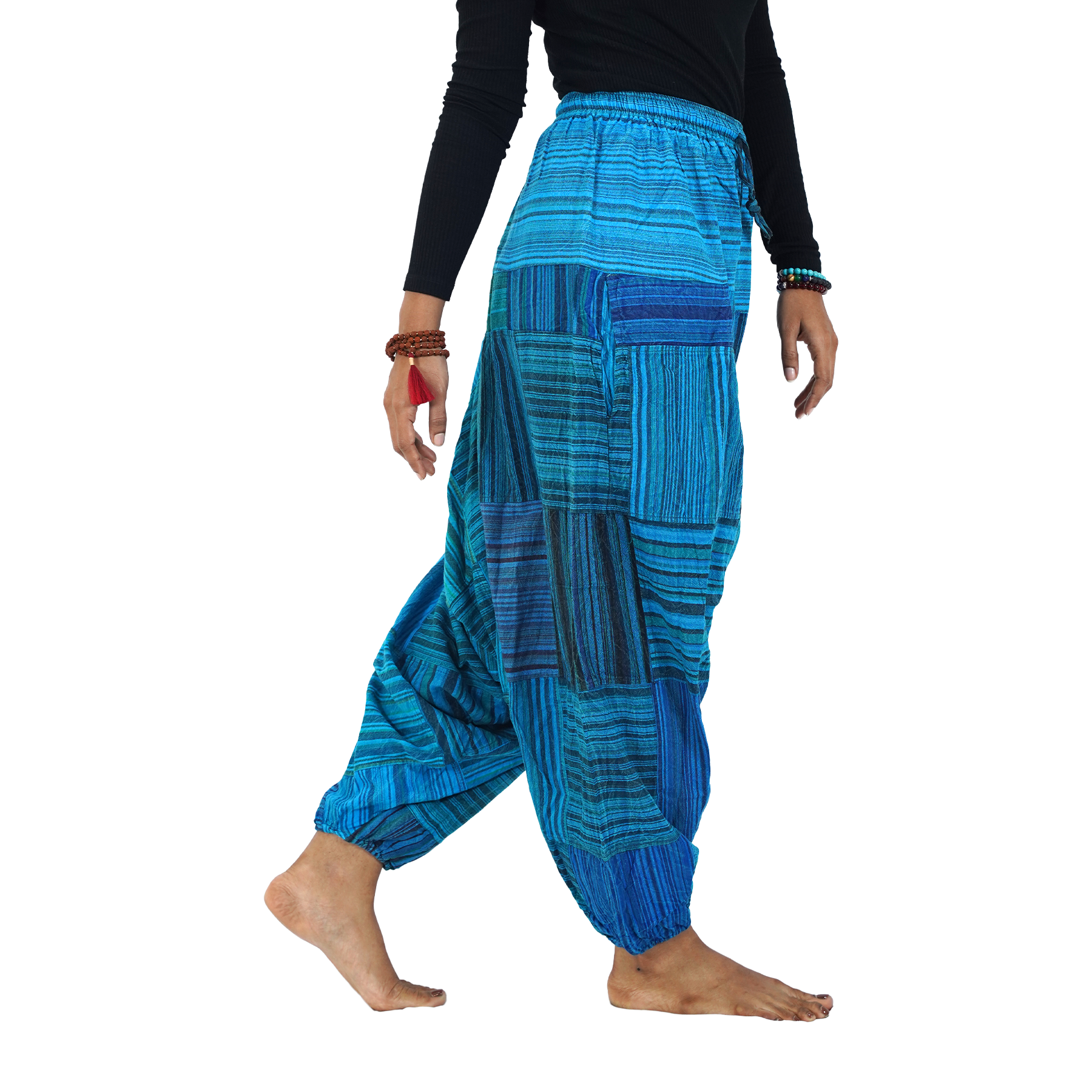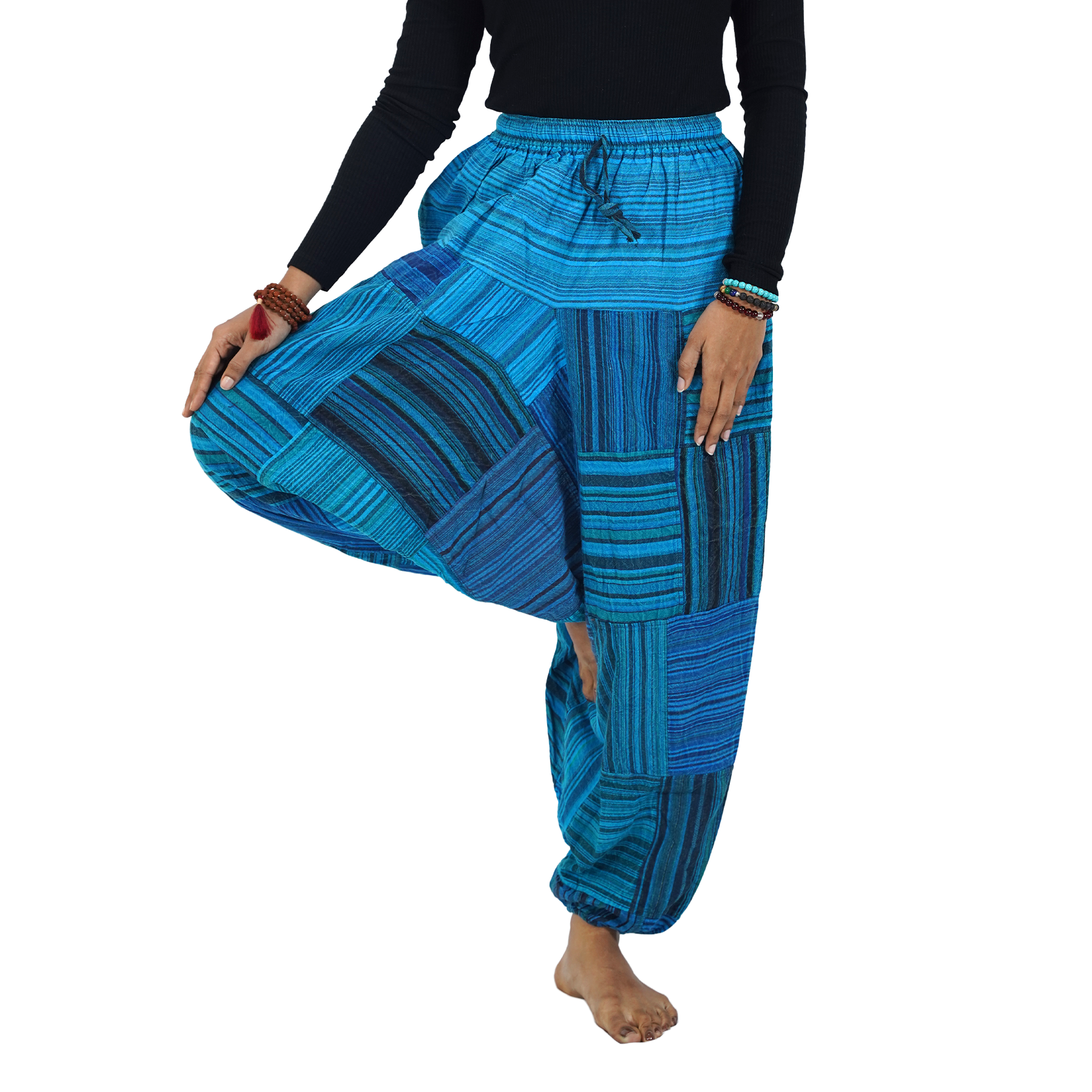 The signature drop crotch design provides a relaxed, flattering fit, while the stylish blue and black striped pattern adds a touch of effortless cool to your wardrobe. Whether you're flowing through your favorite yoga sequence or crushing your workout, the Satyugyoga Harem Pant will elevate your practice and your style.