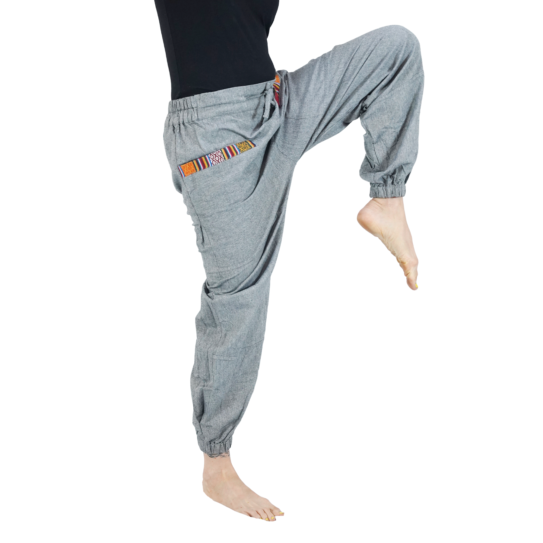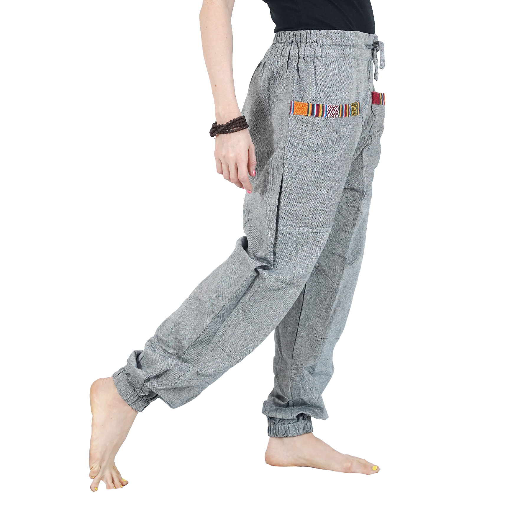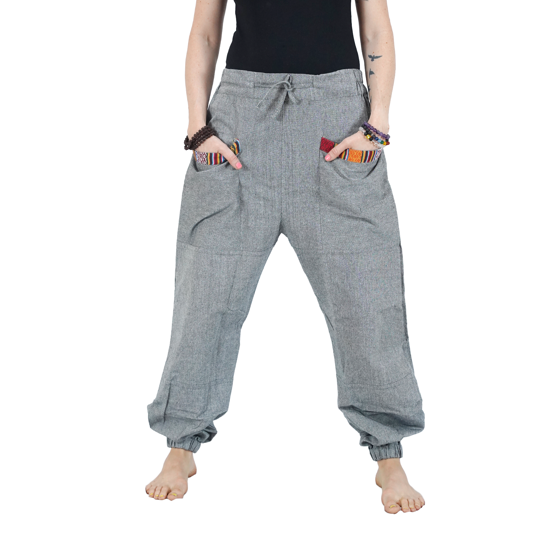 Add a touch of relaxed elegance to your everyday wardrobe with the Satyugyoga Regular Hopper Pants in Dark Ash, featuring unique small patch front pocket detailing.