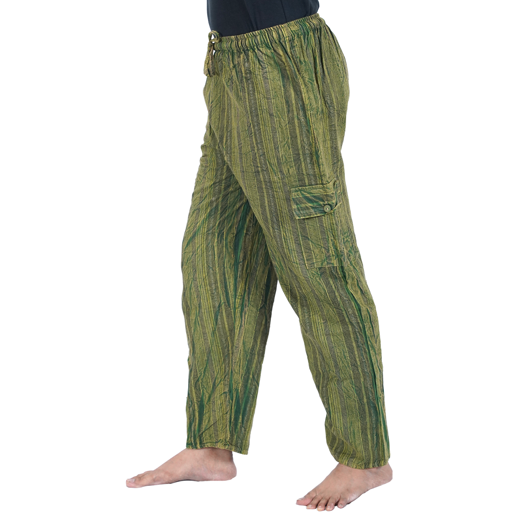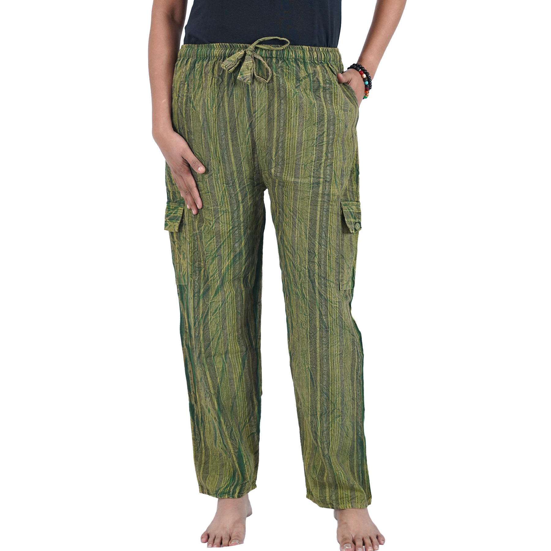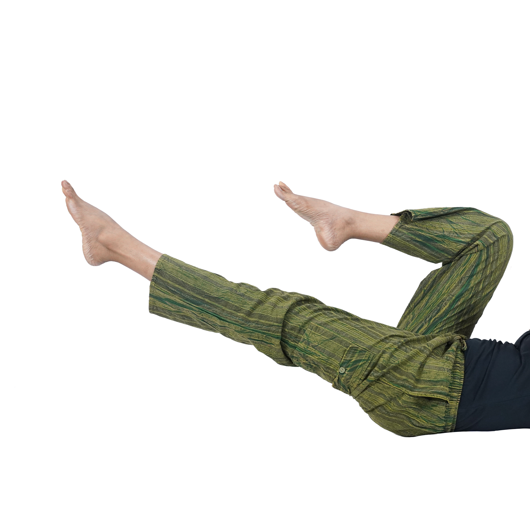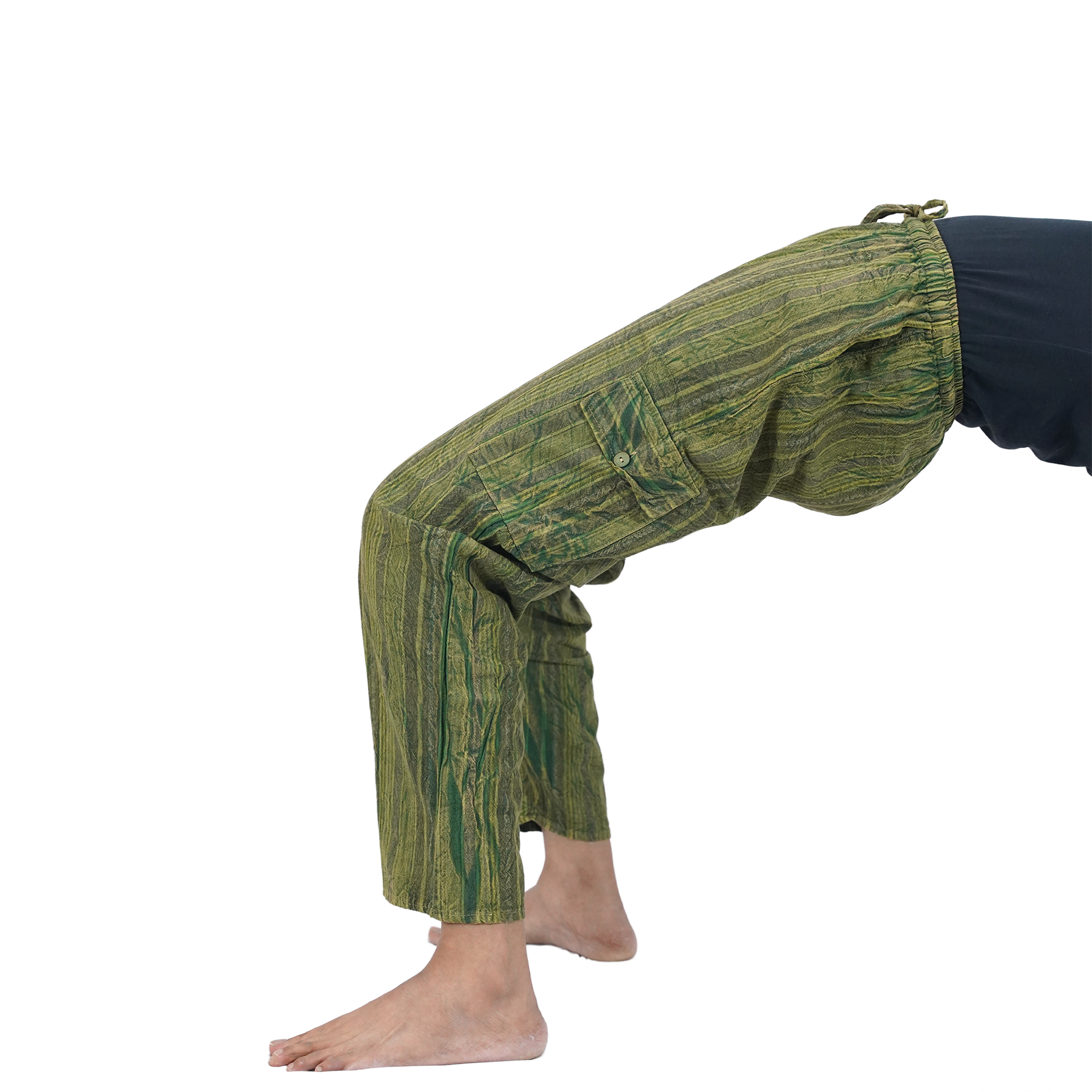 Refresh your everyday wear with the Satyugyoga 4 Pocket Pyjama in Green Big Black Stripes. Its earthy green shade and bold striped pattern create a relaxed yet confident look that transitions easily from yoga practice to casual outings.