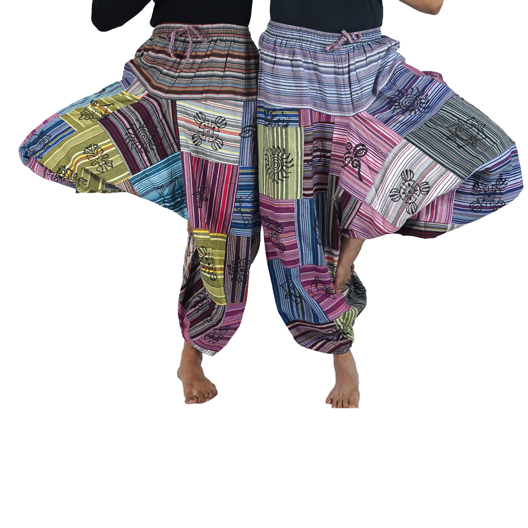 Celebrate color, comfort, and creativity with the Satyugyoga Non Dyed Premium Patchwork Harem Pants. The patchwork of multi-colored stripes gives every pair a distinctive artistic look—no two are exactly alike.
