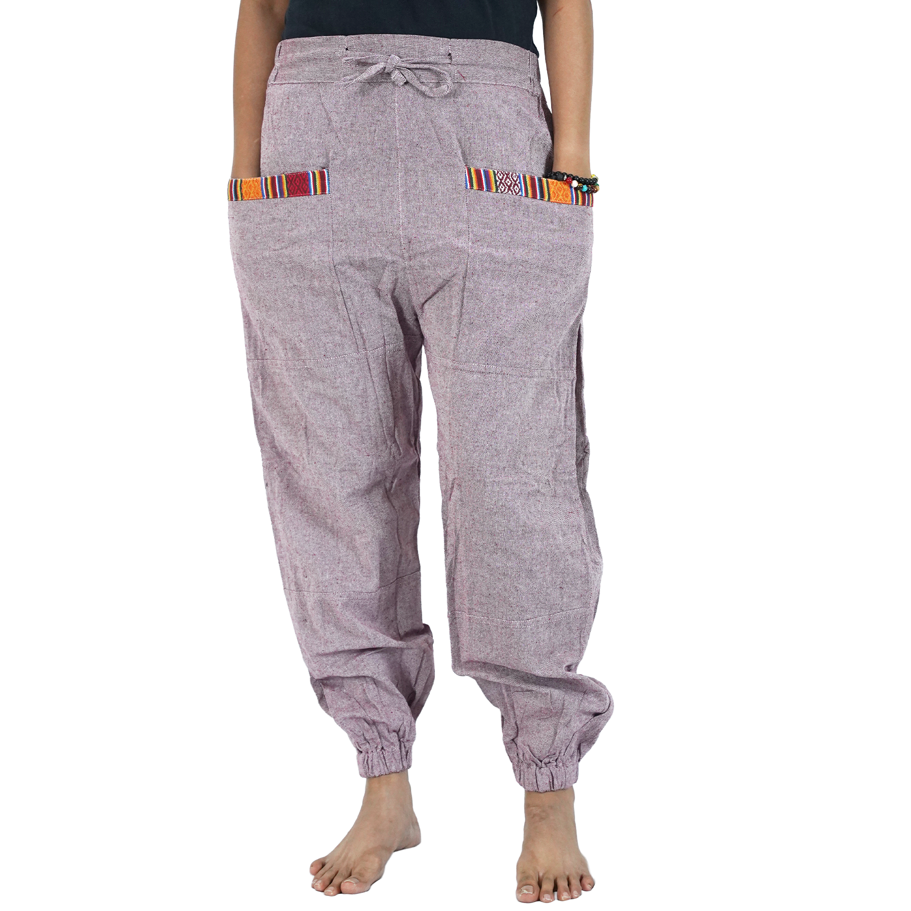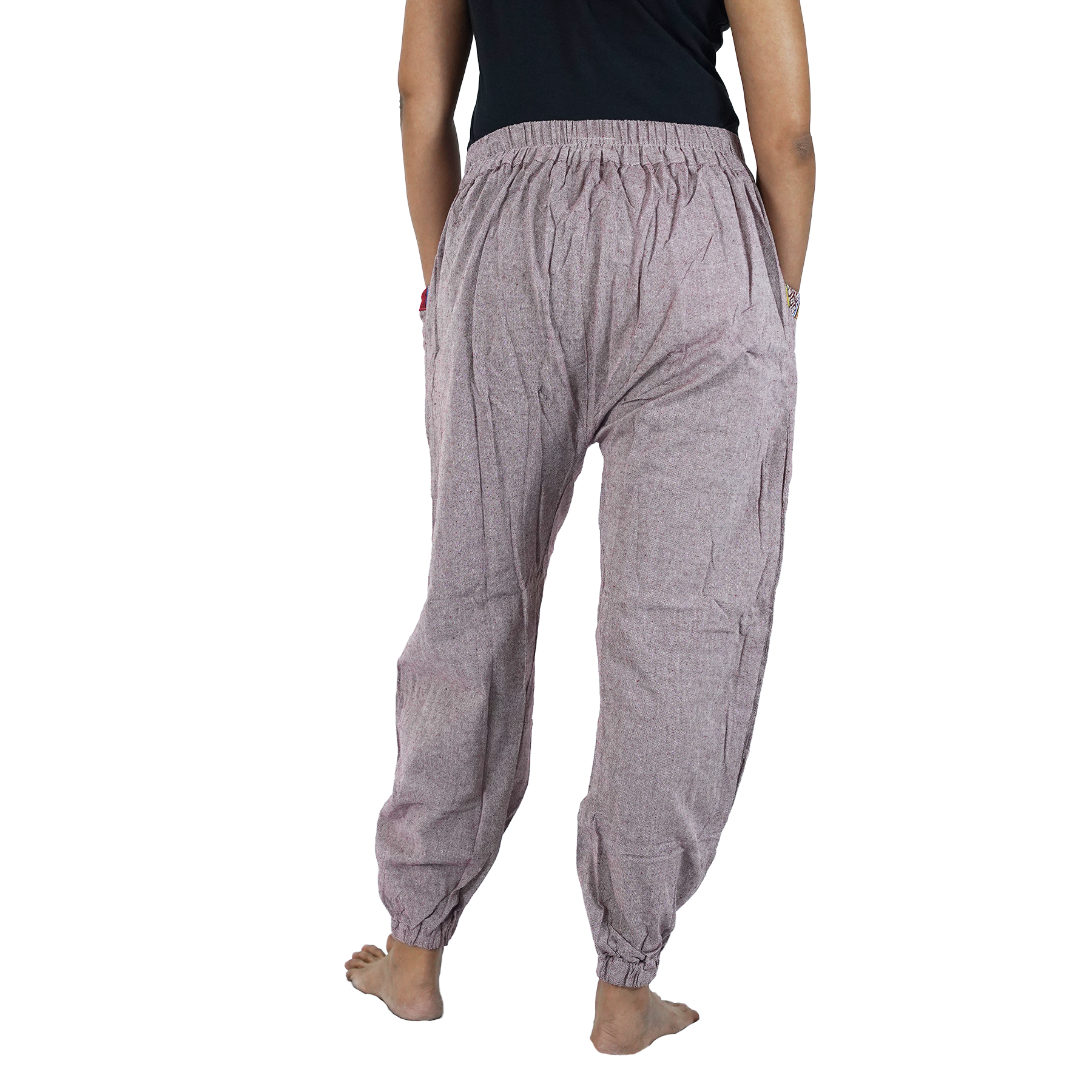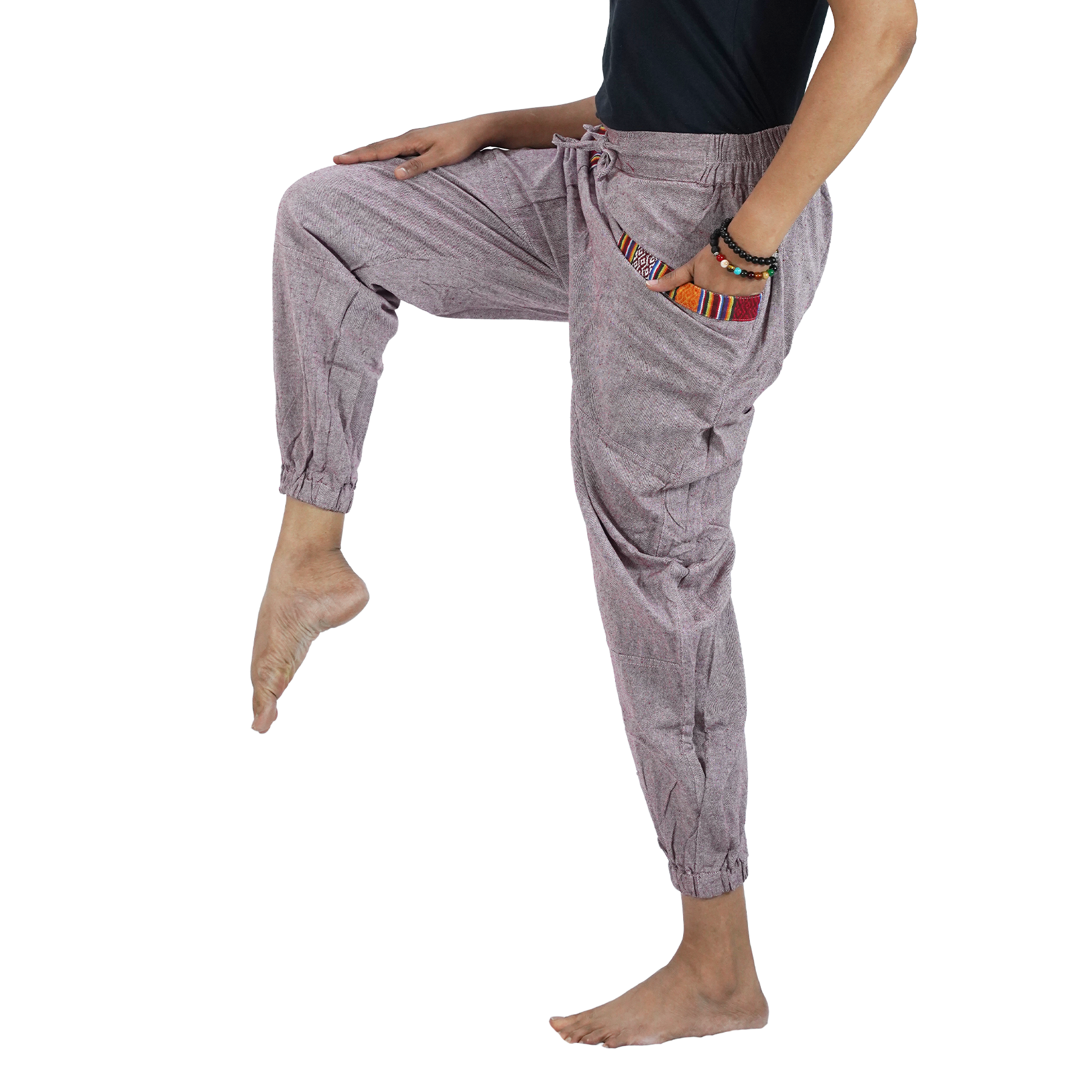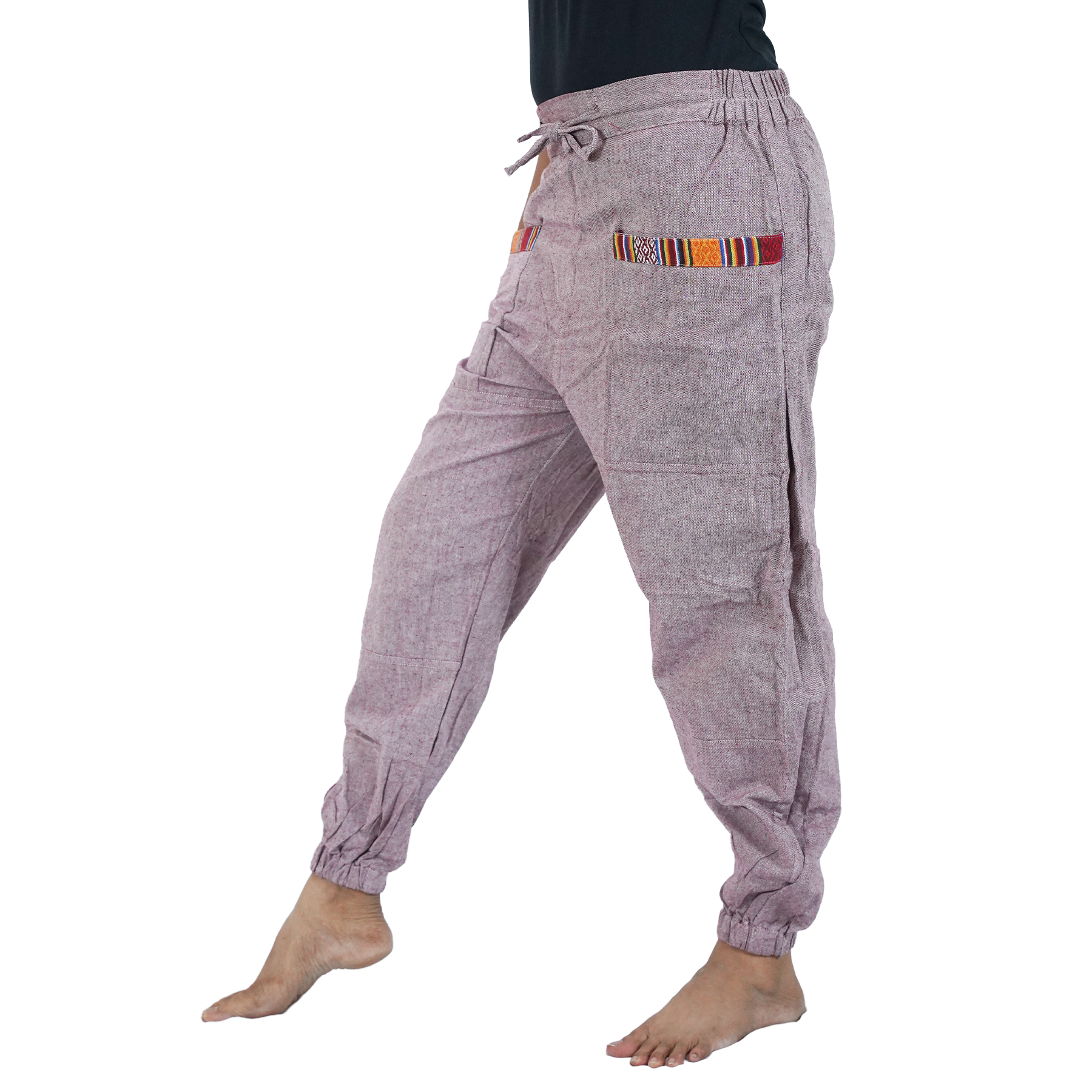 Perfect for yoga, meditation, casual outings, or relaxed travel days, these pants combine versatility with free-spirited style. The natural cotton keeps you cool and comfortable while the pocket accents bring a dash of artisanal charm.