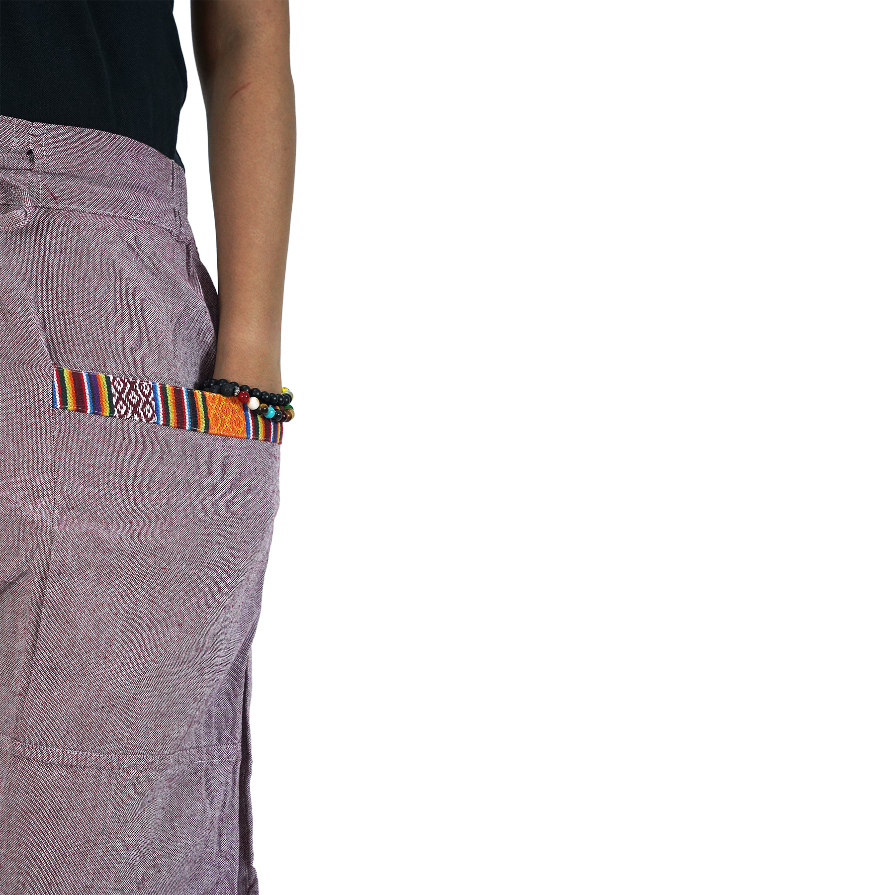 Enjoy effortless comfort and bohemian charm with the Satyugyoga Regular Hopper Pants in a warm reddish brown shade, featuring vibrant small patch front pockets for a unique touch.