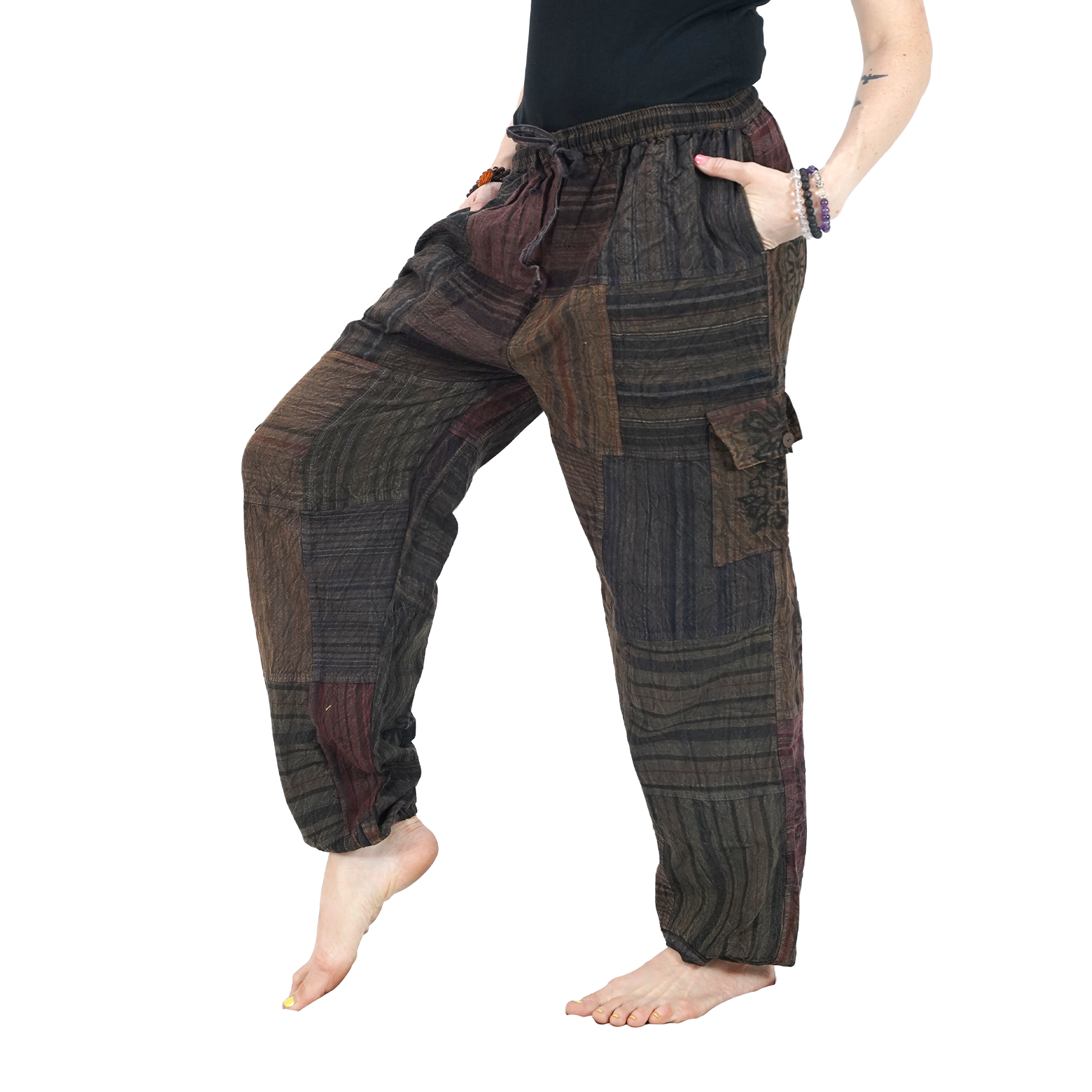 Ideal for meditation, yoga, lounging, or casual outings, these harem pants bring together rustic tones and carefree comfort in one versatile piece.